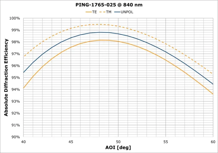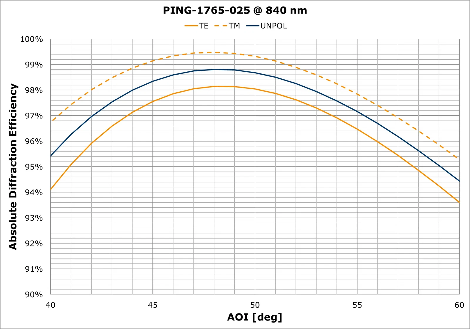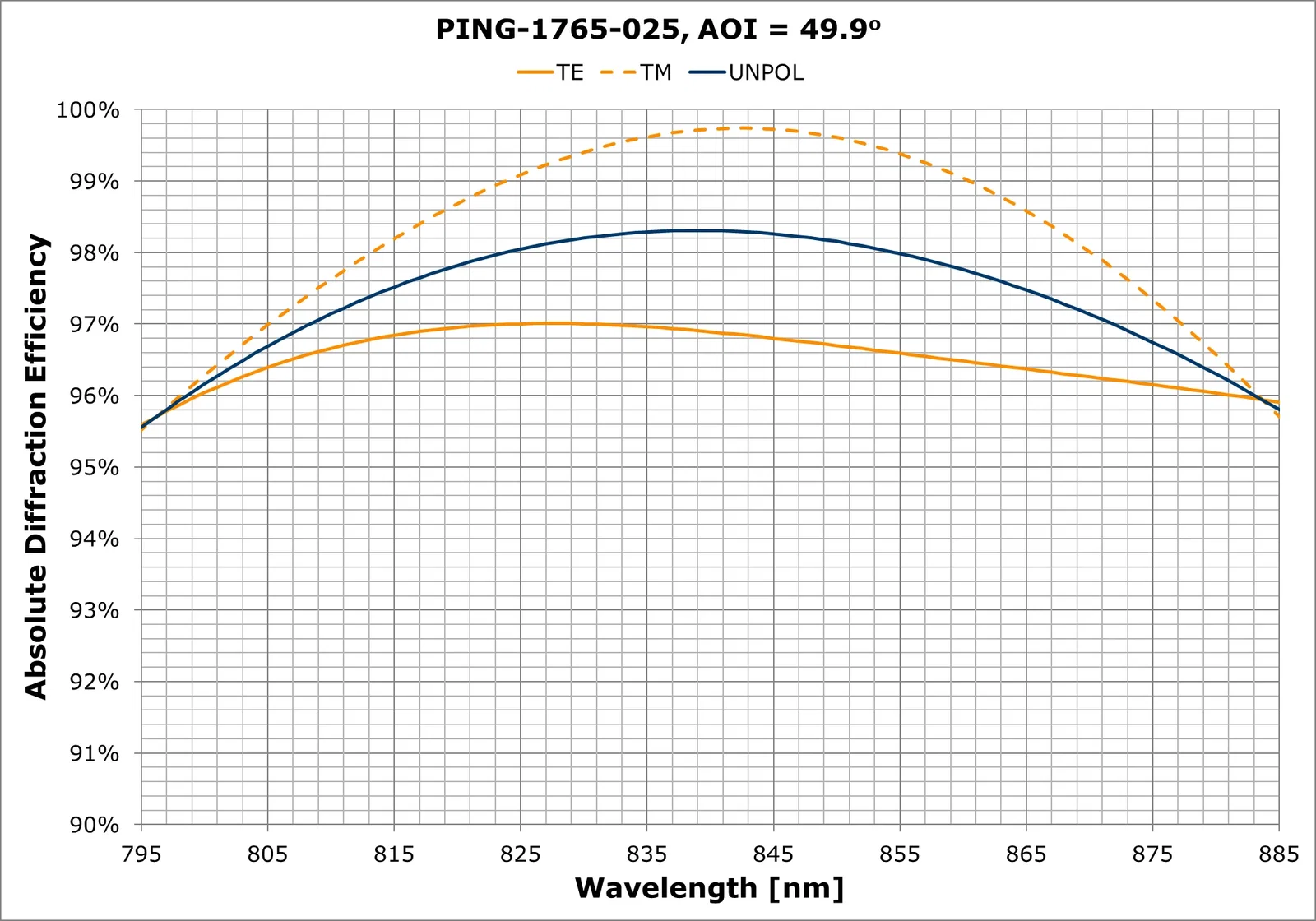 | Angle of incidence | 49.9 deg (nominal - see plot below which shows great AOI tolerance) |