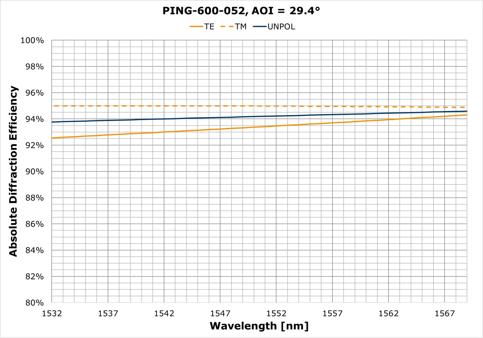| Diffraction efficiency (TE & TM) | > 90% |