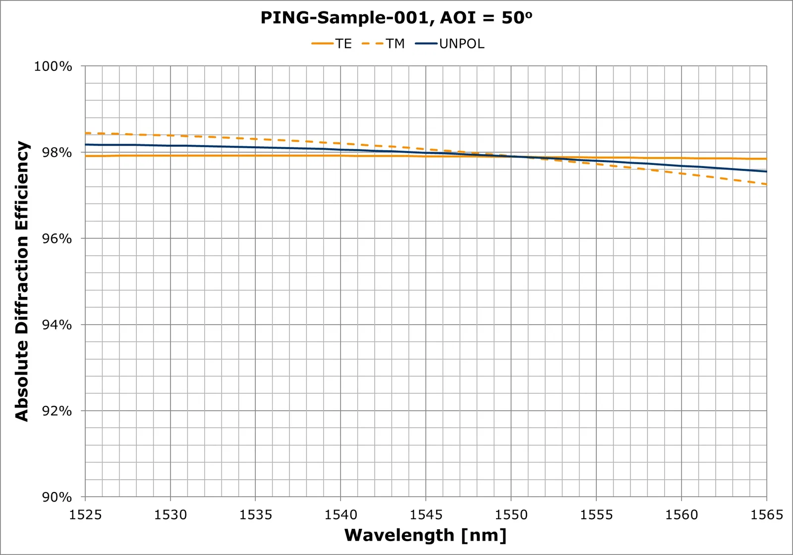 | Diffraction efficiency (TE & TM) | > 90% |