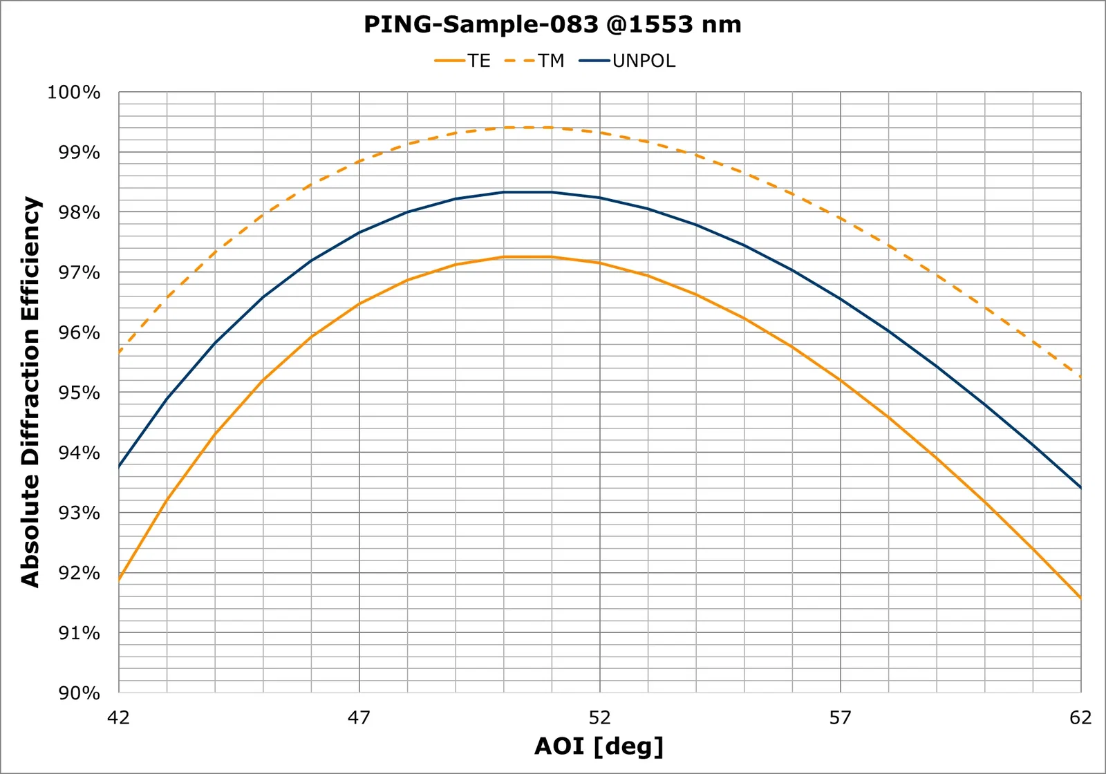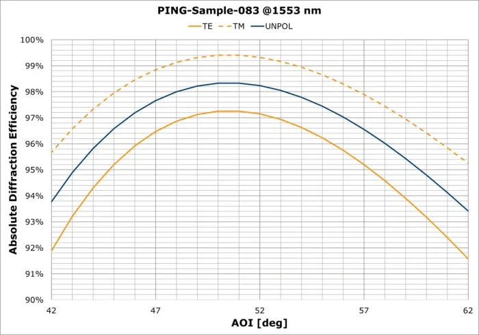 | Angle of incidence | 49.9 deg (nominal - see plot below which shows great AOI tolerance) |